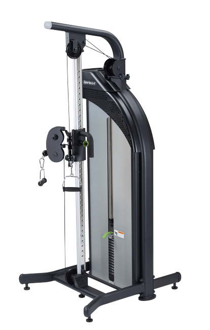 The SportsArt seated row machine targets your back muscles. Muscles include Teres Major (outer back), the Latissimus Dorsi (middle back), the Rhomboids, the Middle and Lower Trapezius (upper back), the Erector Spinae (lower back), the Pectoralis Major, the Lower Chest Muscles, the Posterior Deltoids (shoulder), the Infraspinatus (shoulder), the Teres Minor (shoulder) muscles.
